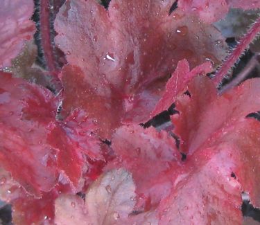 The beautiful wine-red leaves of Heuchera x 'Fire Chief' become darker as they age, making a vivid contrast between newer and older leaves. Flowers are pink and white on red stems, and appear throughout spring and summer. Heuchera x 'Fire Cheif' is one of the Front & Center™ series of Coral Bells.