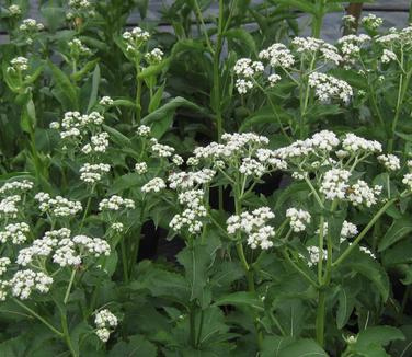 Wild Quinine or Feverfew is an interesting native perennial with a number of unusual small wooly white flowers borne in flat-topped showy corymbs. The fragrant green leaves are contrastingly large, making a good setting for the delicate long-lasting blooms. Parthenium has a very long flowering period from late May into August, making it a wonderful back-of-the-border perennial or woods edge softener. Formerly used as a medicinal plant, Wild Quinine is unpalatable to deer and other pests.