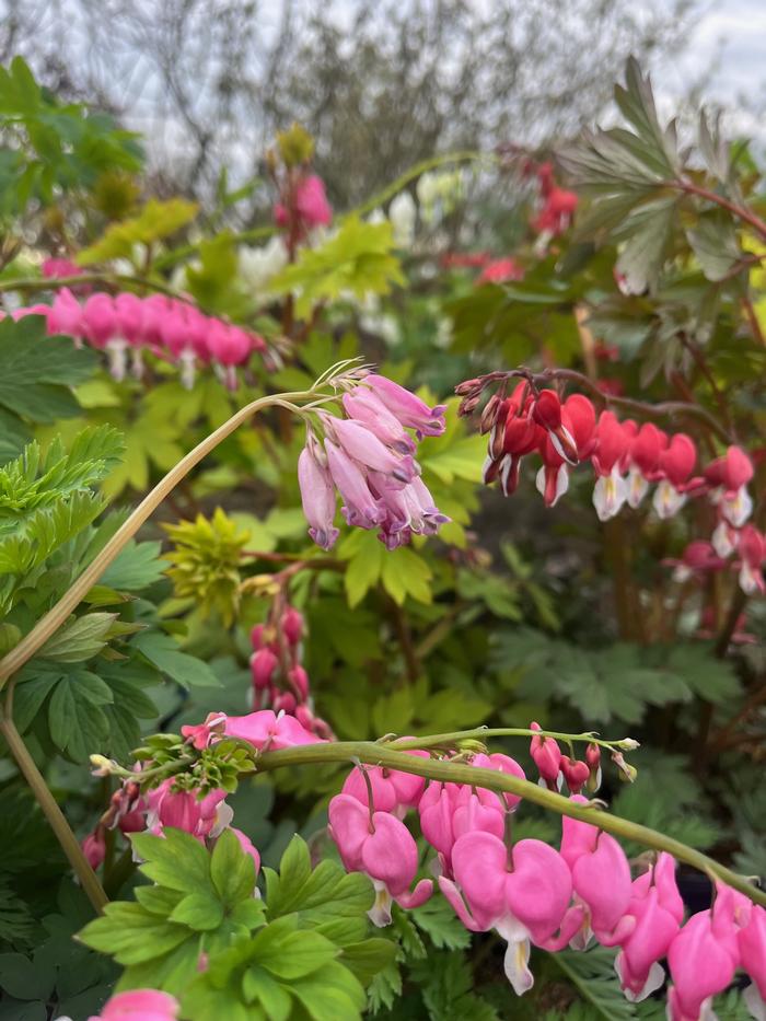 The last week has brought a fresh flush of flowers and foliage around the entire Nursery. Color is becoming abundant from corner to corner, blanketing the property in yellows, purples, pinks, creamy and bright whites, and verdant greens. Amongst these harbingers of Spring, the well-loved Bleeding Hearts are making their appearance – both in the landscape as well as in production here on the farm. Being as this is a beloved ornamental and well known to plant aficionados and amateurs alike, we’re gonna keep it pretty straight forward this week and let the beauty of the plants speak for themselves through photographs. (Don’t worry, we’ll give you some fun plant facts along the way, too.)