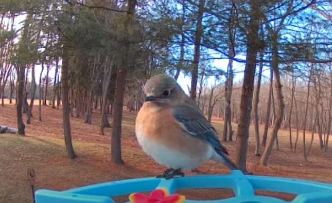 Although rather elusive to bird feeders unless mealworms are involved, Eastern bluebirds are frequent inhabitants of open meadows, fields, grasslands, pastures, and nearby open woodlands with sparse stands of trees.Younger Eastern bluebirds prefer nesting in small tree cavities left behind by woodpeckers, often 50’ above ground in pine or oak trees, while older Eastern bluebirds have been found to prefer lower-suited, human-made birdboxes that are widely available and produced in such a way to make cleaning of debris easier. Several of these nesting boxes can be found around the perimeter of Pleasant Run, although it takes some further inspection to see who the residents are.