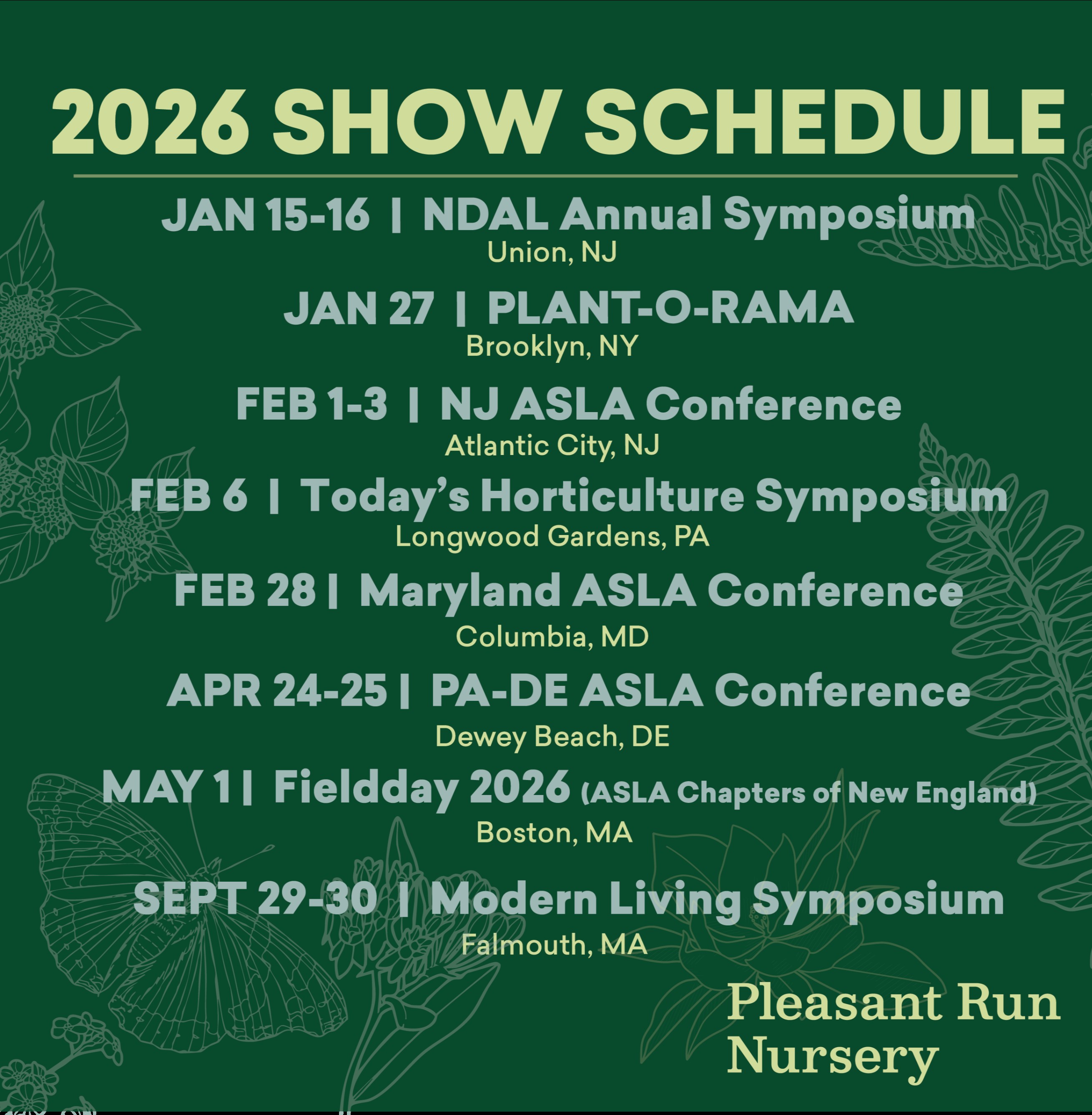 We look forward to talking with you all about these topics and much, much more as the year continues. Make sure to find us at the following trade shows in 2026, and as always, feel free to stop by the nursery and say hello! We’re thrilled to embark on this new year with you all and can’t wait to see what you have in store for us.