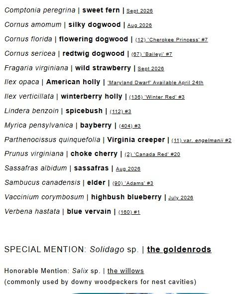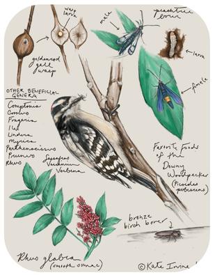 Below are fruit and seed-producing plants that are preferred by downy woodpeckers, although it should not be ignored that Solidago species are critical for supporting these birds via the specific goldenrod gall wasps that rely on them.