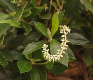 Summer Sparkler, formerly Einstein® ('Novacleein') Summersweet blooms in July and August, producing 12" white flower spikes. The blooms are fragrant and somewhat curly because of their unusual length. Clethra alnifolia Summer Sparkler is a compact form of Summersweet, making a good deer resistant shrub groundcover. Introduced by Star Roses in 2015.