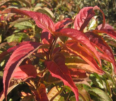 'Copper' Bush Honeysuckle has sulfur yellow flowers in July, over copper colored new foliage. The fall color is shades of bronze, orange and red. It is a It is a suckering, densely-branched, shrub that when in bloom is loved by butterflies. Diervilla lonicera 'Copper' is a very tough, maintenance-free plant, and tolerates dry shade well. Insects love the flowers.