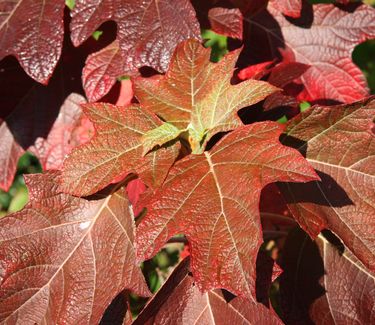 Snow Queen™ ('Flemygea') Oakleaf Hydrangea has upright white panicle flowers and burgundy-red fall foliage. Hydrangea quercifolia Snow Queen™ was introduced by noted plantsman, William Flemer III. All the Oakleaf Hydrangeas show some deer resistance.