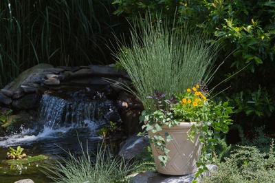 ‘Blue Arrows’ Rush is one of Hoffman’s Nursery’s Fantastic Foliage™ series, and this is a very showy evergreen selection. The straight blue green leaves or blades are very dramatic in wet sites or containers. Juncus inflexus ‘Blue Arrows’ thrives in rain gardens bioswales and stream sides, as well as average garden soils. It makes a dramatic central plant in a mixed container. Prune back old growth in spring.
