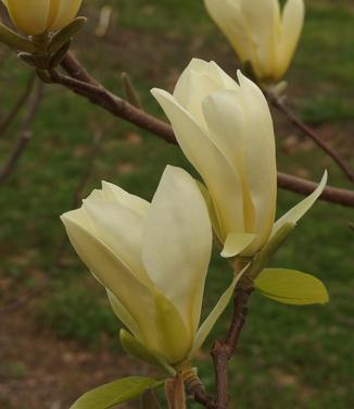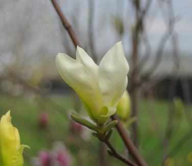 'Gold Finch' Magnolia is a complex cross from the late Phil Savage of Michigan. The M. acuminata parentage can be seen in its habit (tall and upright) as well as its flower color (light yellow). Magnolia x 'Gold Finch' is very cold hardy, and is a rather early bloomer. The large showy blossoms are tulip or goblet shaped.