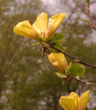 Magnolia x brooklynensis 'Judy Zuk' is a spectacular and fitting tribute to the much missed former president of the Brooklyn Botanical Garden, Judy Zuk. Upward-facing fragrant flowers are a strong yellow, flushing to orange pink at the base. A very beautiful Magnolia coming from BBG's wonderful hybridizing work. M. acuminata is prominent in its ancestry.
