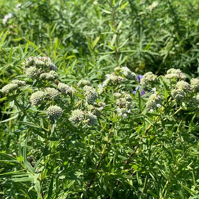 Appalachian Mountain Mint has attractively fragrant foliage topped by spiky round silvery white flowers in late summer. The blooms are highly attractive to butterflies. Since Pycanthemum flexuosum spreads by underground stolons, it does a good job on slopes and stream sides. The fall foliage color takes on shades of red for added interest. This fragrant native is adaptable to many different site conditions and is the larval host for the grey hairstreak butterfly, whose caterpillar stage has a symbiotic relationship with ants, making this species doubly important for natural ecological processes. Very deer resistant.