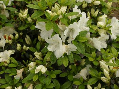 'Pleasant White' Azalea has large bright white flowers over deep green evergreen foliage. The flowers open in late spring and cover the plant. Hybridized in Ohio by Girard Nurseries, the producer of so many beautiful and hardy Azaleas and Rhododendrons.