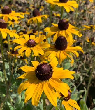 Black-Eyed Susan is considered a biennial, but since it seeds so readily, Rudbeckia hirta does not disappear from the garden. This native wildflower has deep yellow petals surrounding a black cone, which are an important food source for pollinators and songbirds, such as the goldfinch. It is the larval host plant of the Silvery Checkerspot butterfly and attracts a specialist Mining bee. Over the winter, their seeds provide food for songbirds, such as the goldfinch.